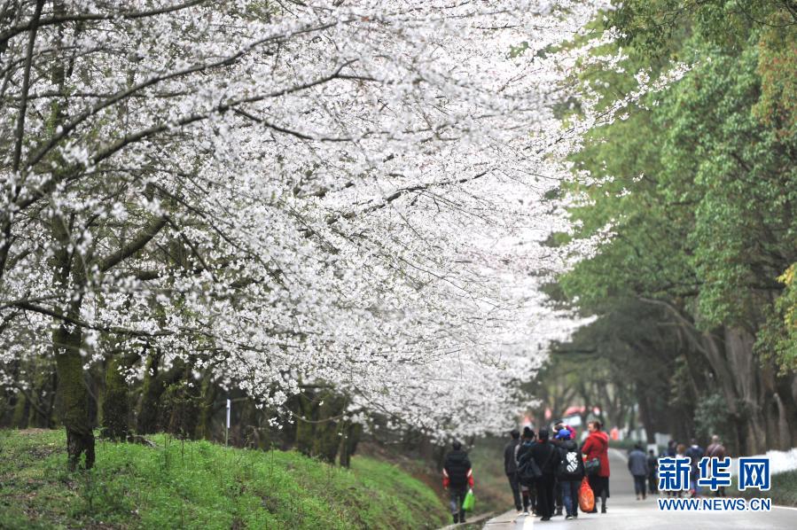 春季里,貴州省貴安新區(qū)紅楓湖畔的櫻花園內(nèi)櫻花綻放,花海如云似雪,吸引游人踏春賞櫻。