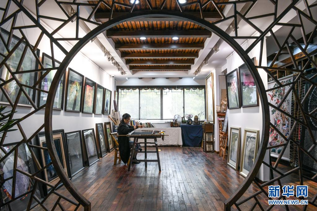 陳英華在位于蘇州高新區鎮湖街道的蘇繡工作室內刺繡(4月14日攝)。新華社記者 李博 攝