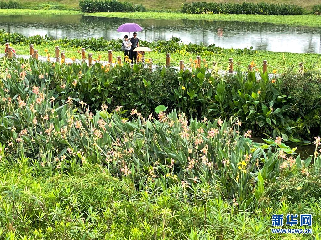立夏時節,廣西南寧市那考河濕地公園內草木吐翠、鮮花斗艷,一派繁茂景象。