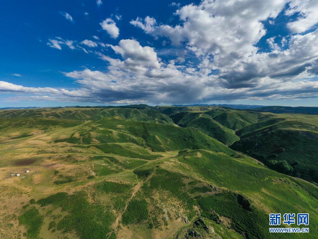 新疆裕民縣巴爾魯克山區夏牧場景觀(6月16日攝,無人機照片)。