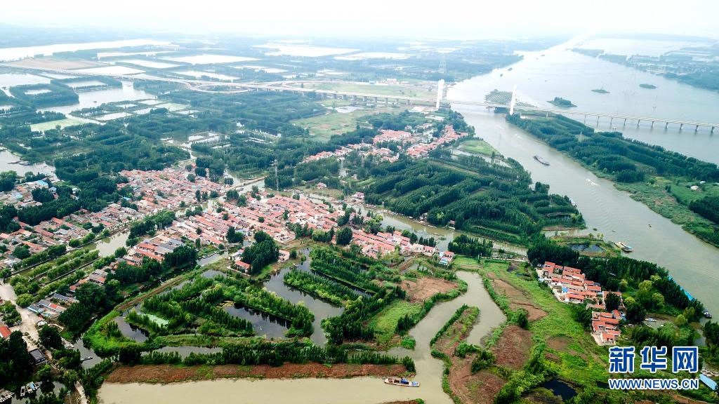這是郵遞員王少朋服務的微山縣南陽鎮(zhèn)一角,南陽鎮(zhèn)四面環(huán)水,交通不便(6月20日攝,無人機照片)。