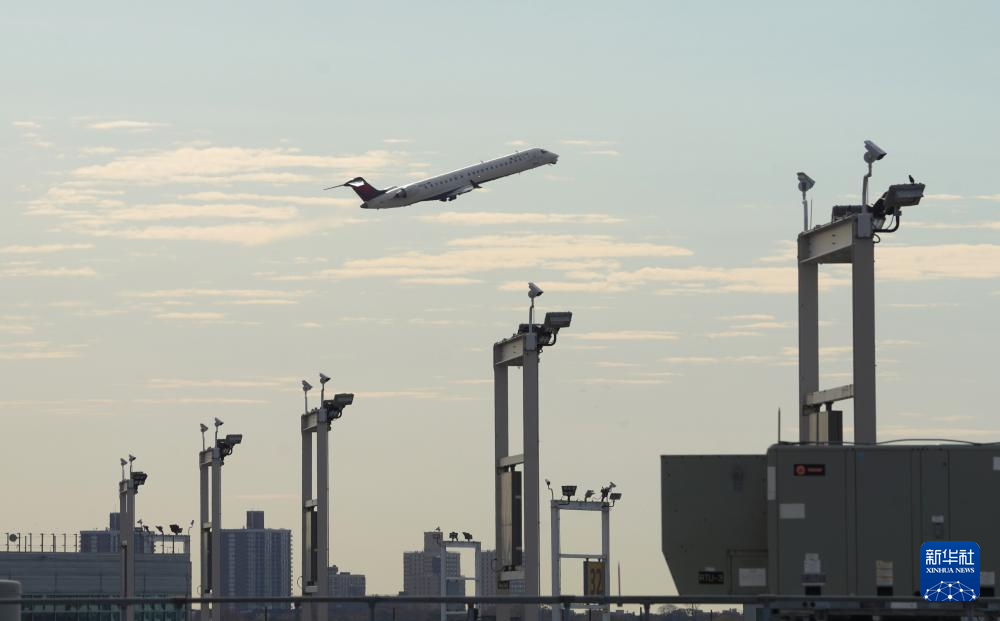 11月5日,一架客机从美国纽约肯尼迪国际机场起飞。新华社记者张凤国摄