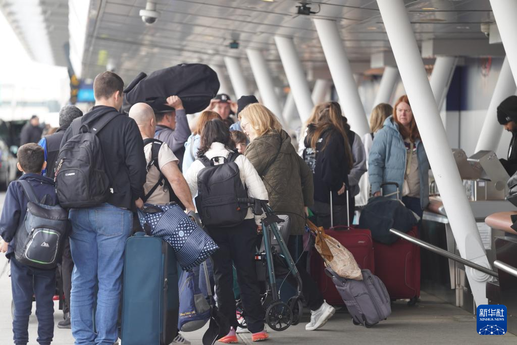 11月5日,在美国纽约肯尼迪国际机场,乘客排队值机。新华社记者张凤国摄