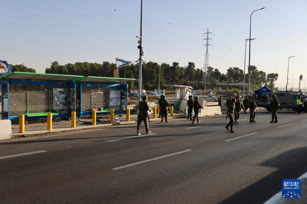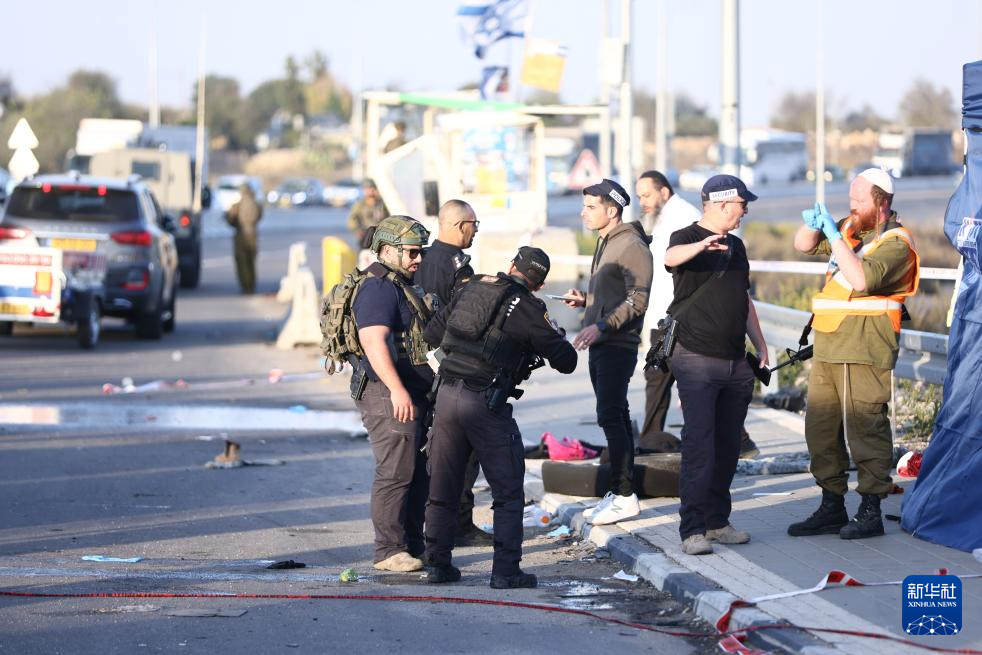 11月18日,在约旦河西岸古什埃齐翁路口,安全人员在袭击现场开展工作。新华社发(贾马尔·阿瓦德摄)