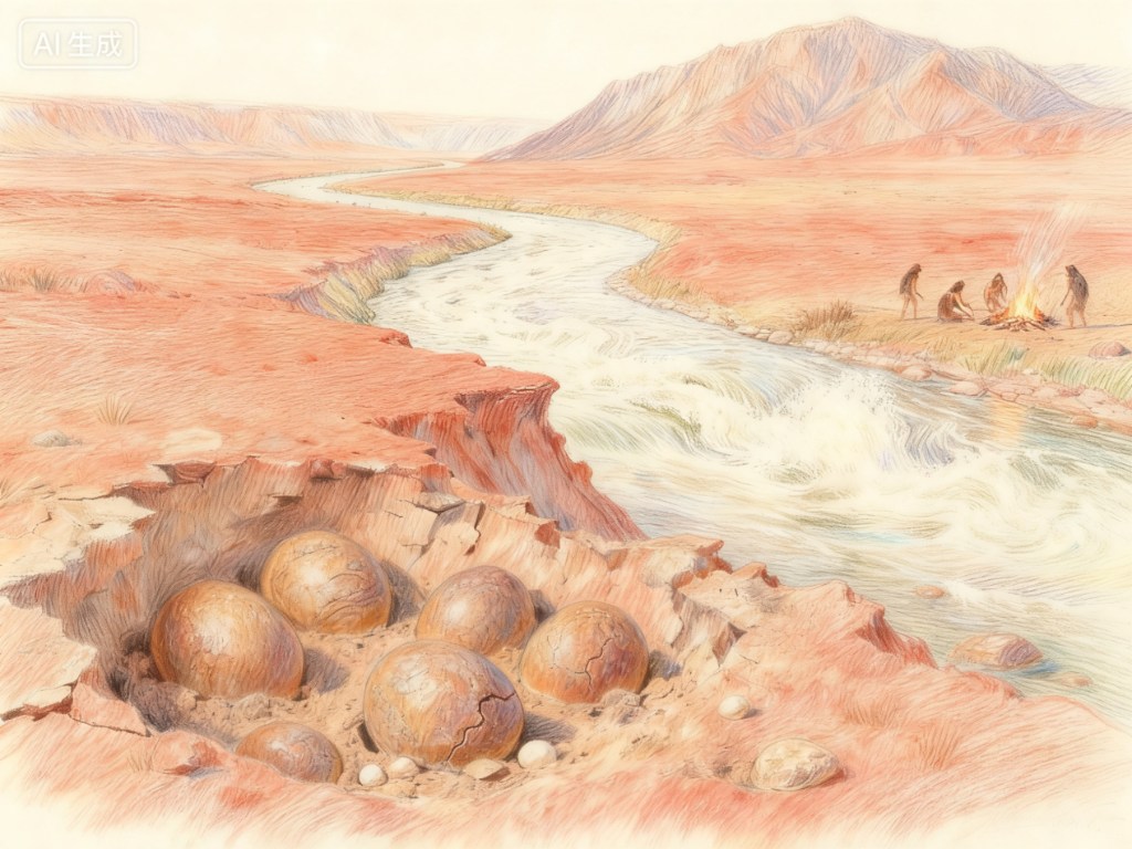 形成于距今约8600万年前的青龙山恐龙蛋化石群,位于湖北省十堰市郧阳区汉江南岸一侧,是全世界恐龙蛋化石最集中、最完整的区域之一。青龙山恐龙蛋化石遗址内,长期散布着大面积的鹅卵石,这些鹅卵石从何而来,又缘何聚集于此?这一疑问吸引了科研人员的关注,继而揭示出古汉江演变或曾串起恐龙蛋化石与古人类活动的关联。
