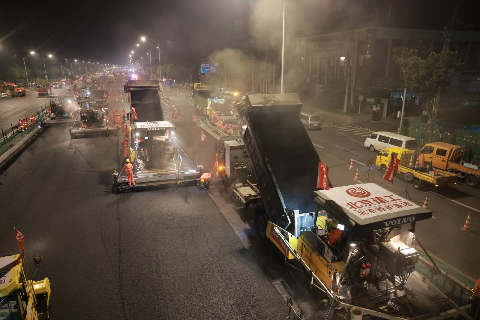 经过前期充分调研和方案论证,在夜间23点至次日5点,数百名建设者、数十台大型机械提前集结,在强大的现场协调、施工组织能力加持下,多个作业面同步施工,无缝衔接地完成了旧路铣刨、新料摊铺、精细顺接等一整套工序。