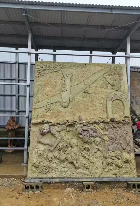 这是2025年11月大轰炸受害者与731部队细菌战受害者与冲绳反战雕刻家金城实一起创作的浮雕“非战与和平”。(受访者供图)