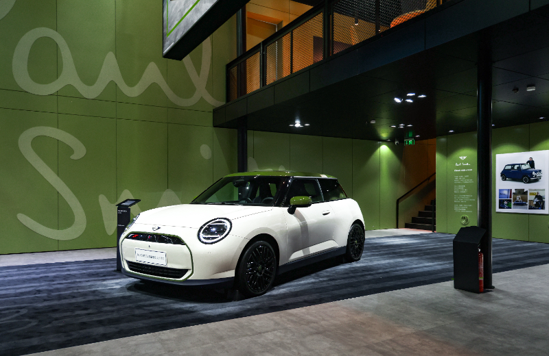 MINI展台以MINI PAUL SMITH设计师款专属“诺丁汉绿”为主色调,迎来电动MINI COOPER PAUL SMITH设计师款的中国首秀。该系列不是普通的联名合作,而是设计师Paul Smith以其贯通时尚、摄影、自行车运动等多元领域的设计智慧,将MINI作为三维载体,进行的一次完整美学表达。这不仅是两个英伦符号的第五次相遇,更是一场跨越27年的创意对话。设计师Paul Smith以他一贯的英式幽默,再次演绎“新意经典”的设计哲学——在经典的框架下演绎叛逆细节,让每一个作品都暗含令人惊喜的故事。