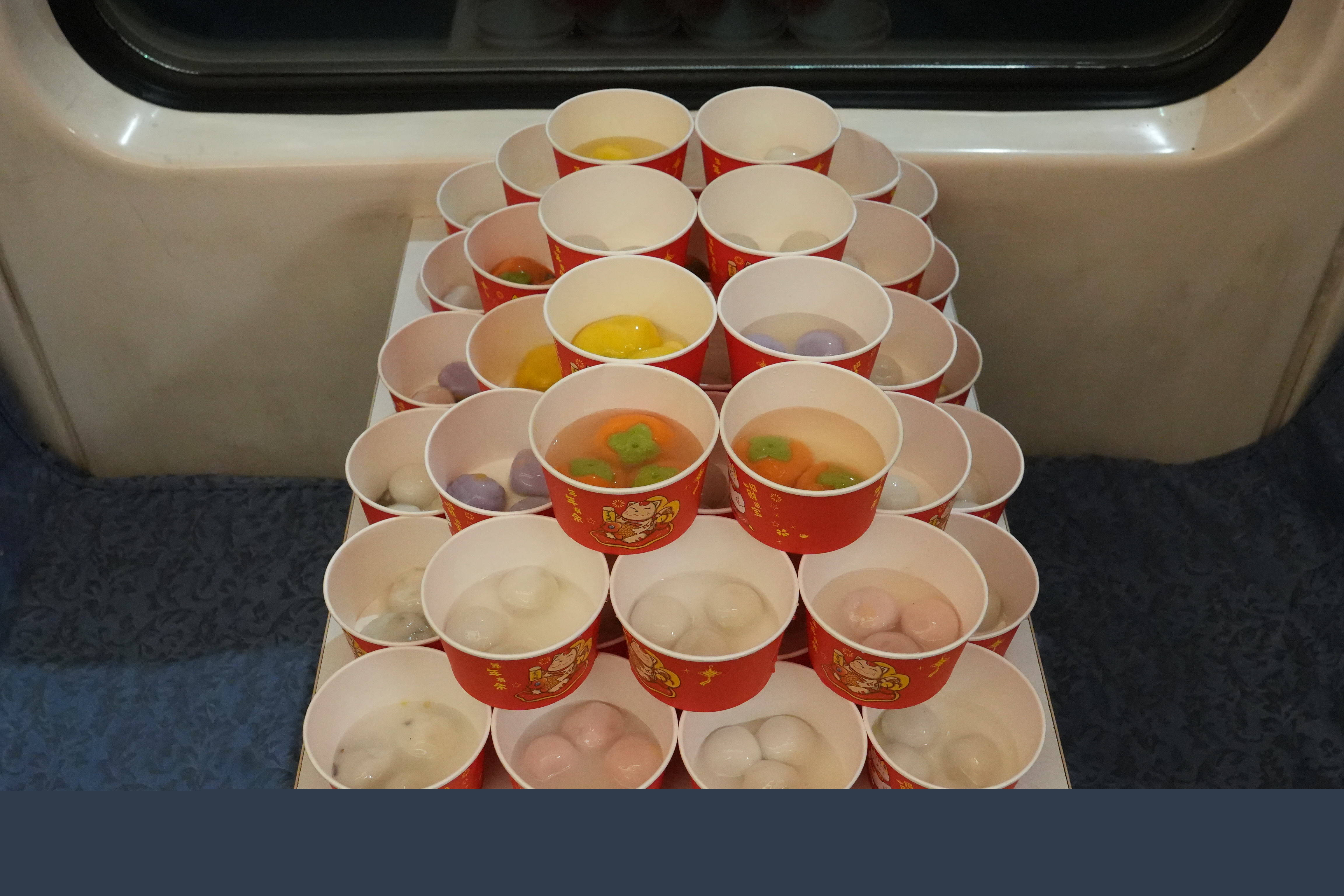 K1669次列车为旅客准备了各种口味的元宵。(王梦婧子摄)