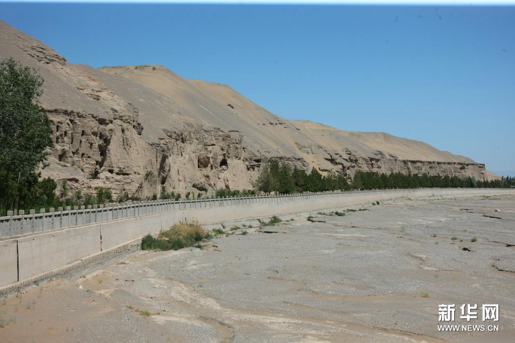 這是敦煌莫高窟北區及河邊防洪堤(7月6日攝)。新華社記者 劉詩平 攝