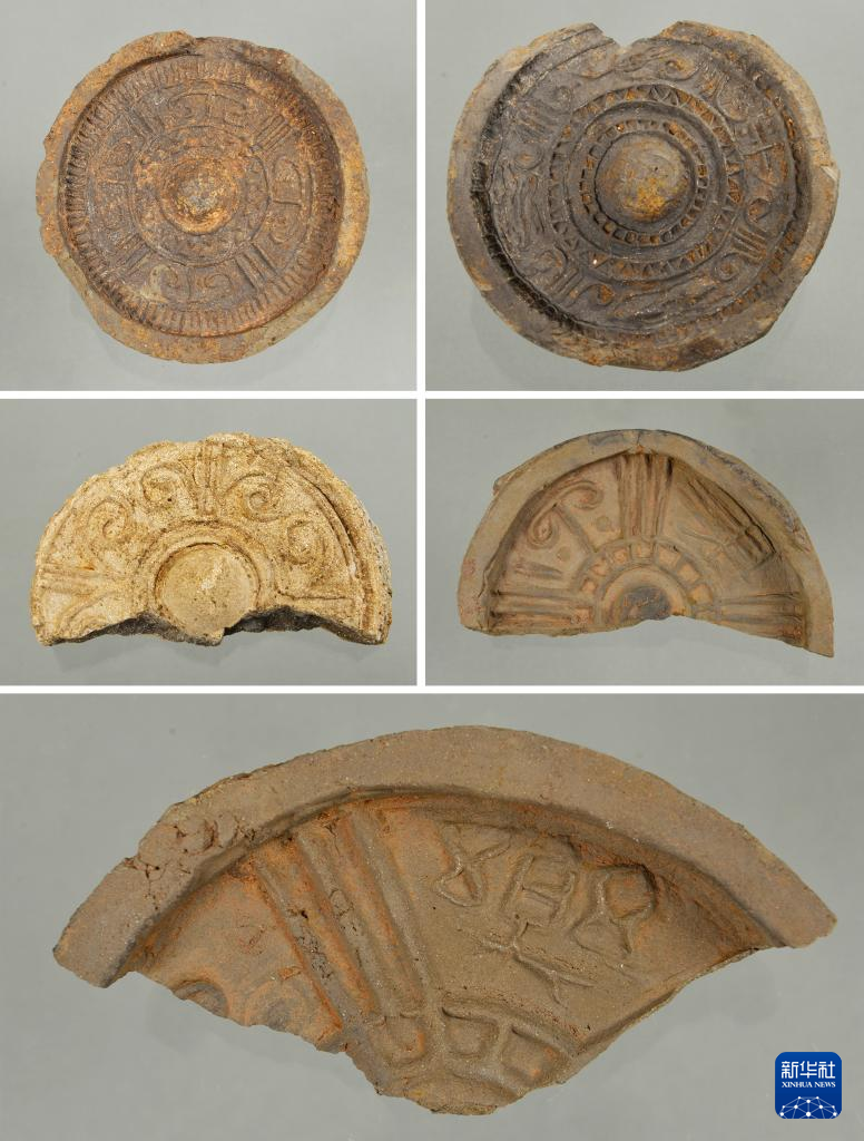 云南昆明市河泊所青铜时代遗址出土的瓦当(拼版照片)。