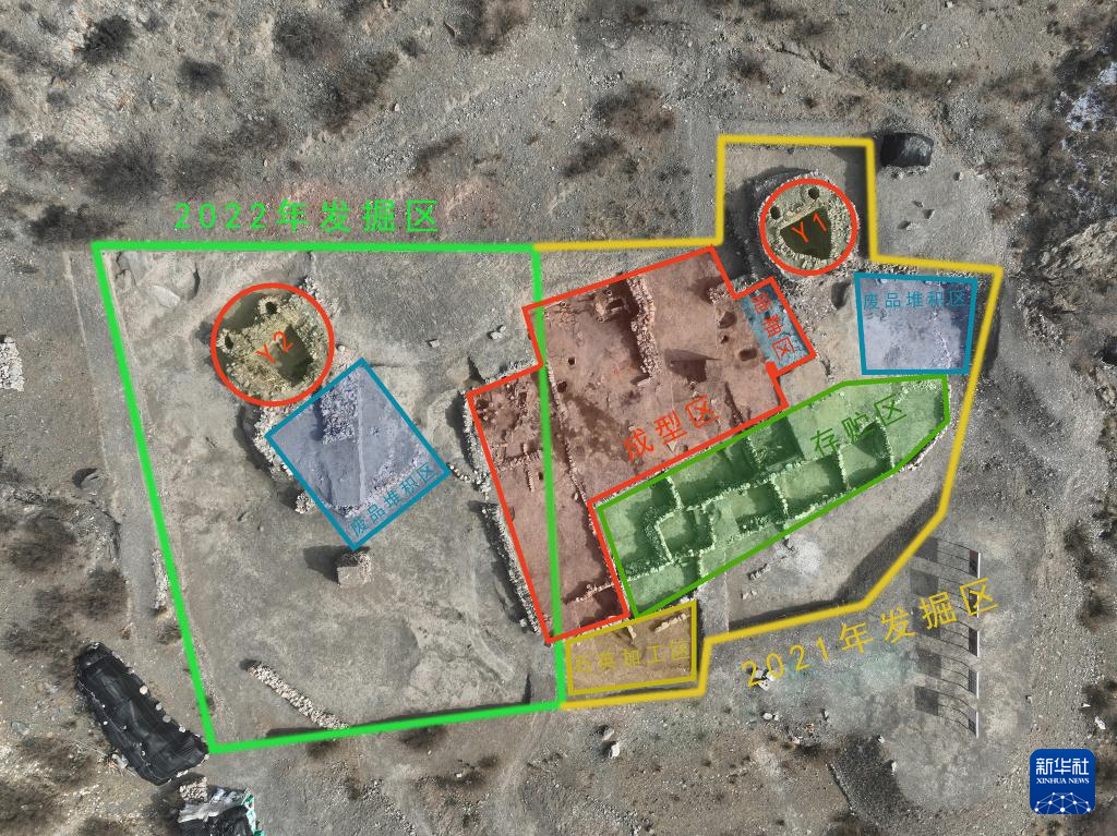 宁夏贺兰县苏峪口西夏瓷窑址2021-2022年发掘区航拍图(资料照片)。
