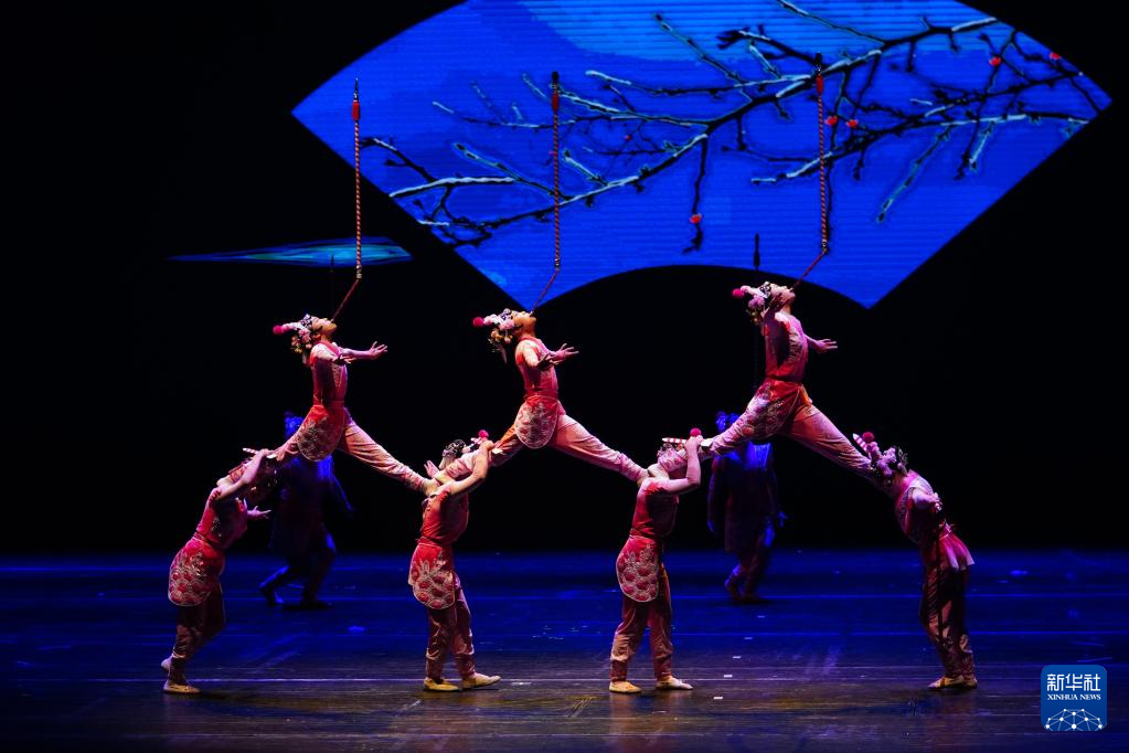 3月21日,在位于山东省济南市的山东省会大剧院,演员表演杂技节目《韵·花样顶技》。
