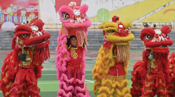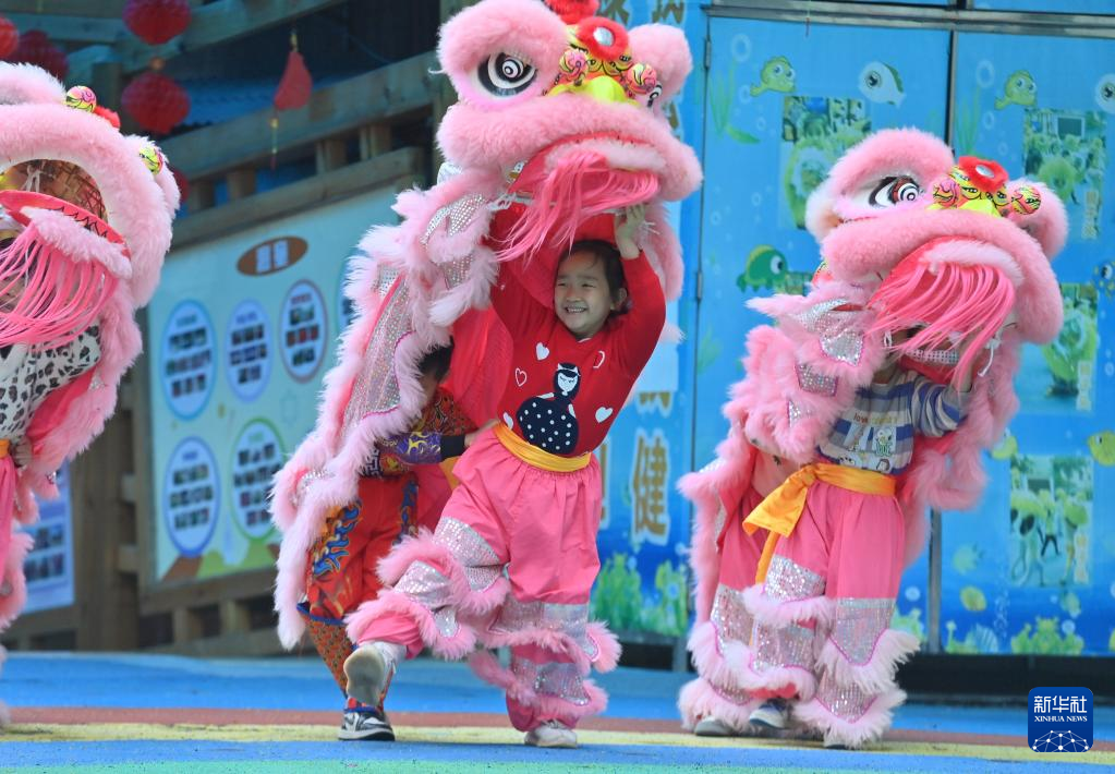 近年来,广西梧州市藤县积极推进狮舞人才梯队建设工作,开展“狮舞文化进校园”活动,将融武术、舞蹈、音乐、杂技等为一体的狮舞列入中小学及幼儿园课程,通过知识学习、兴趣培养、专业训练等方式,引导青少年儿童继承和发扬优良的民族传统文化。