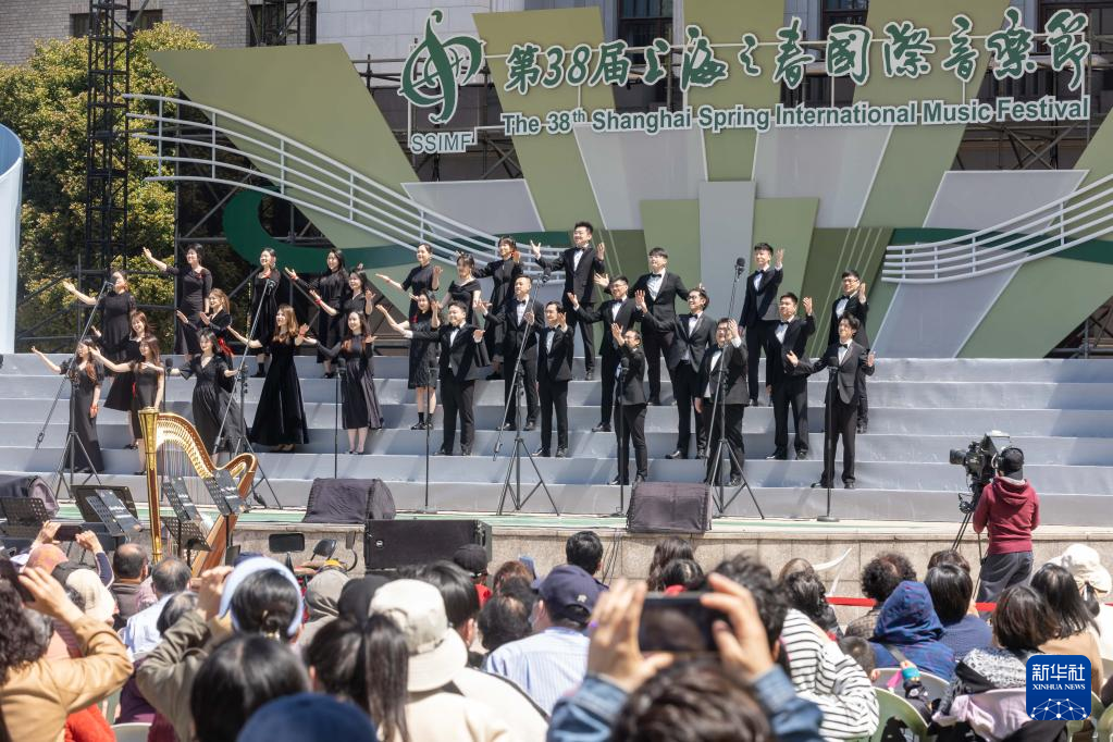 当日,第38届上海之春国际音乐节闭幕。上海城市草坪音乐广场上举行了音乐节闭幕展演。