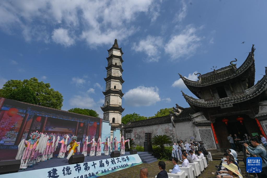 当日,以“非遗传承、三地共富”为主题的浙江省建德市第十届乡村文化节暨2023建德市新叶“三月三”农耕文化节在建德市大慈岩镇新叶古村开幕。现场举行了“龙游硬头狮子”“严州虾灯”“李村抬阁”及昆曲等10余项非遗文化展演。
