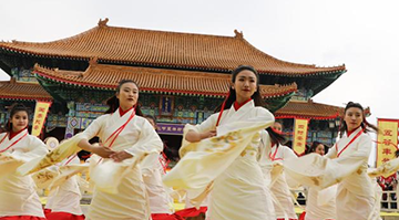 江西省元青花非遗传承人蔡文娟(4月19日摄)。