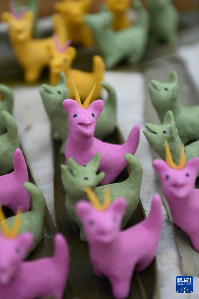 5月4日拍摄的村民制作的米塑“立夏狗”。