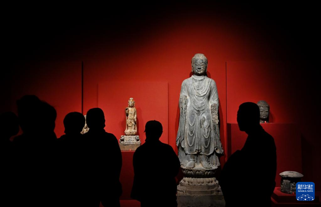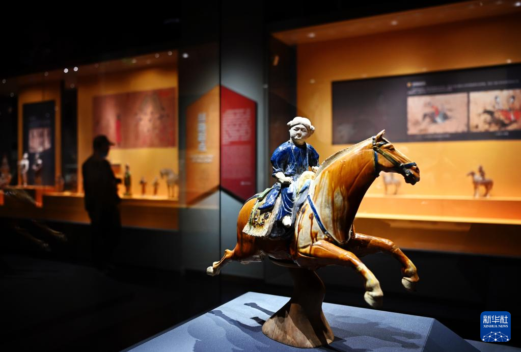 游客在小雁塔下的西安博物院内参观(4月27日摄)。