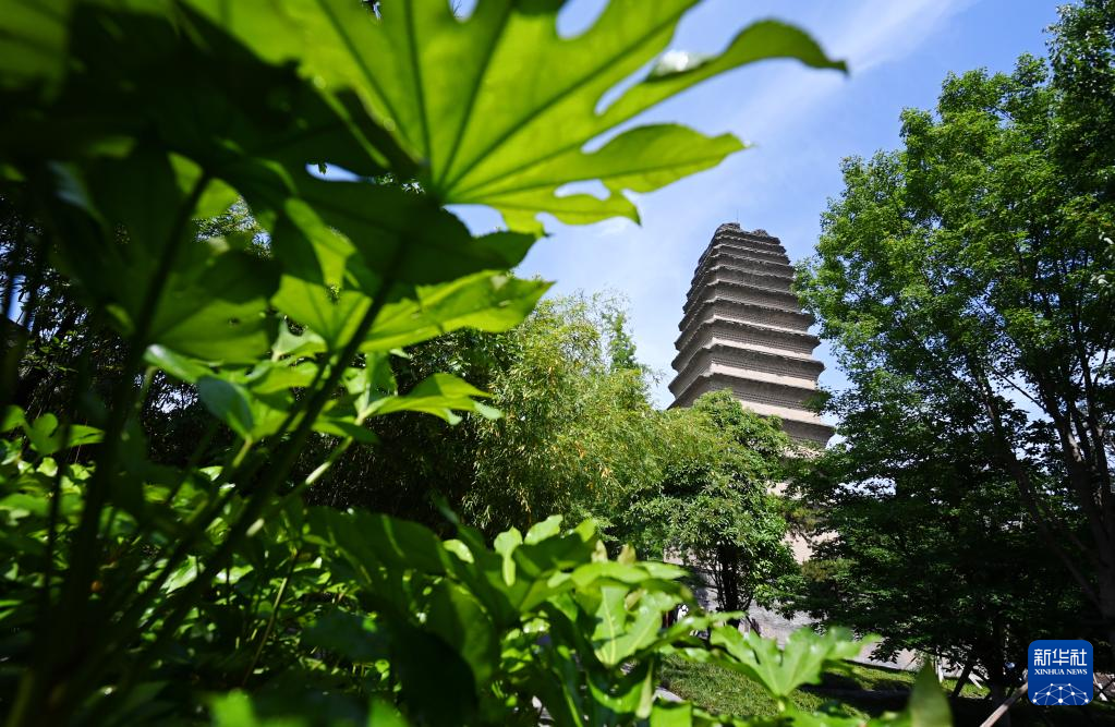 游客在西安荐福寺内参观游览(5月8日摄)。