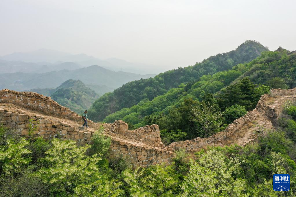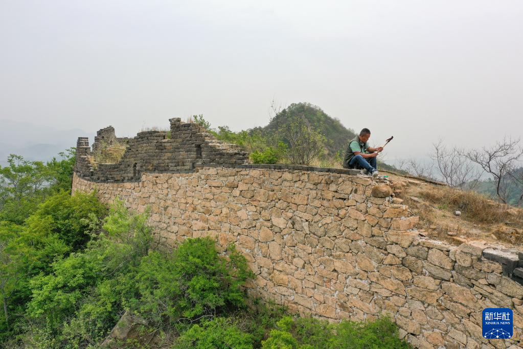 5月13日,赵春生在前后杖子段长城上巡查(无人机照片)。