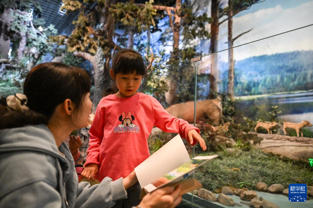 5月18日,参观者在内蒙古博物院参与亲子故事汇活动。