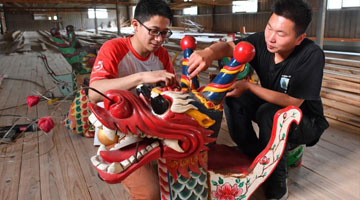 6月15日,两条参加车陂龙舟竞渡的龙舟在村民瞩目之下准备出发。