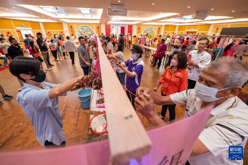 6月18日,人们在马来西亚吉隆坡参加裹粽比赛。