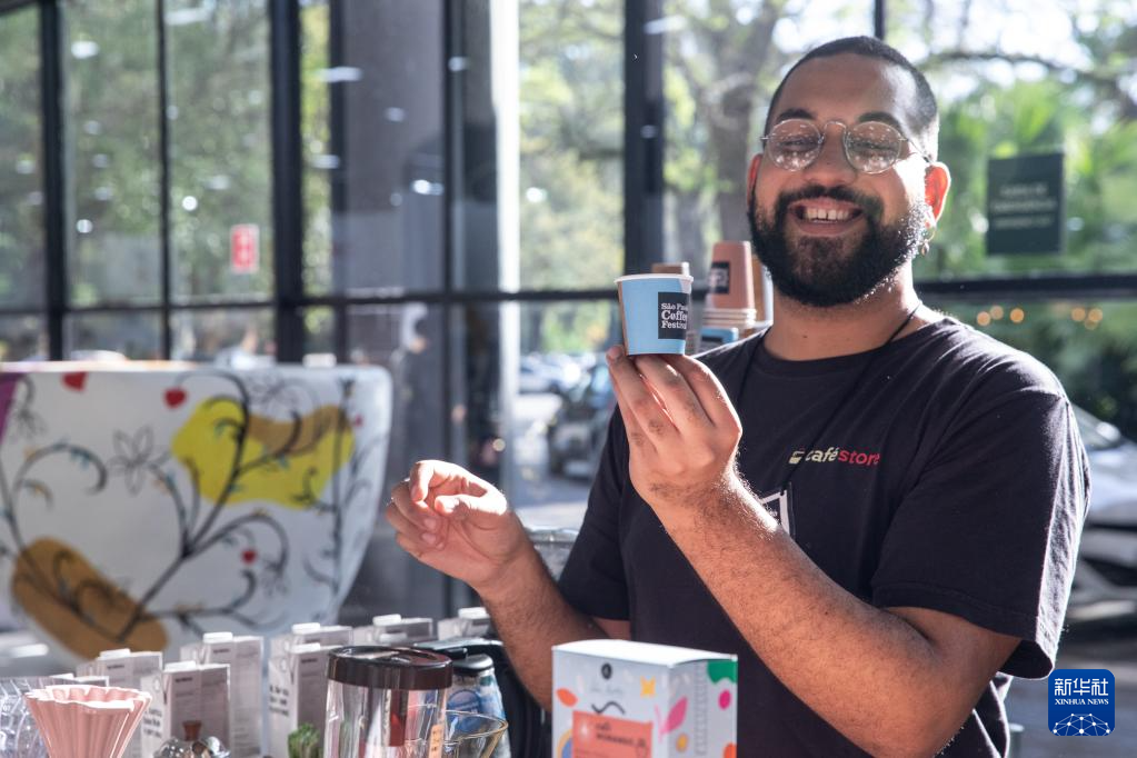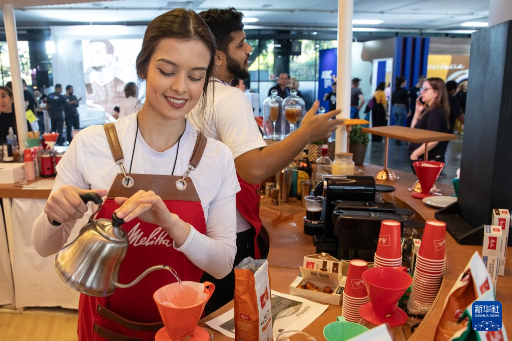 6月23日,在巴西圣保罗举行的咖啡节上,工作人员展示制作好的咖啡。