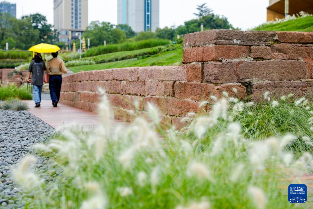 7月20日拍摄的位于成都体育中心内的东华门遗址公园内场遗址区(无人机照片)。