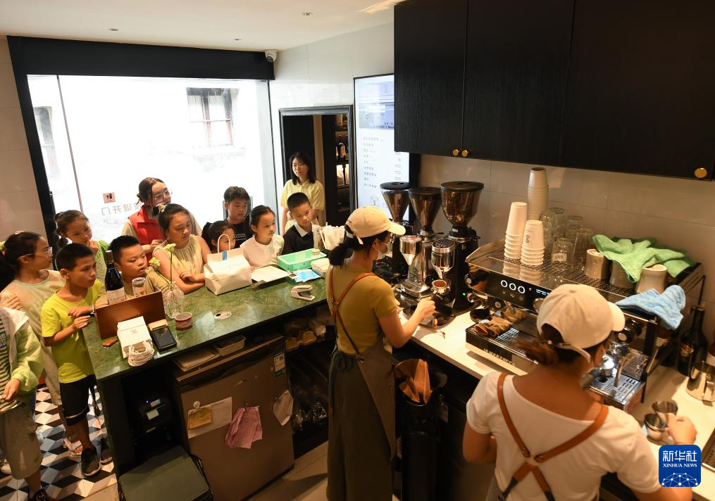 7月19日,青少年在小西街一家咖啡馆了解咖啡制作流程。