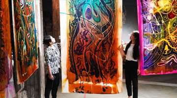 8月11日,高校艺术院系的大学生们在葛家村的特色酒吧内讨论村落艺术改造提升的设计方案。