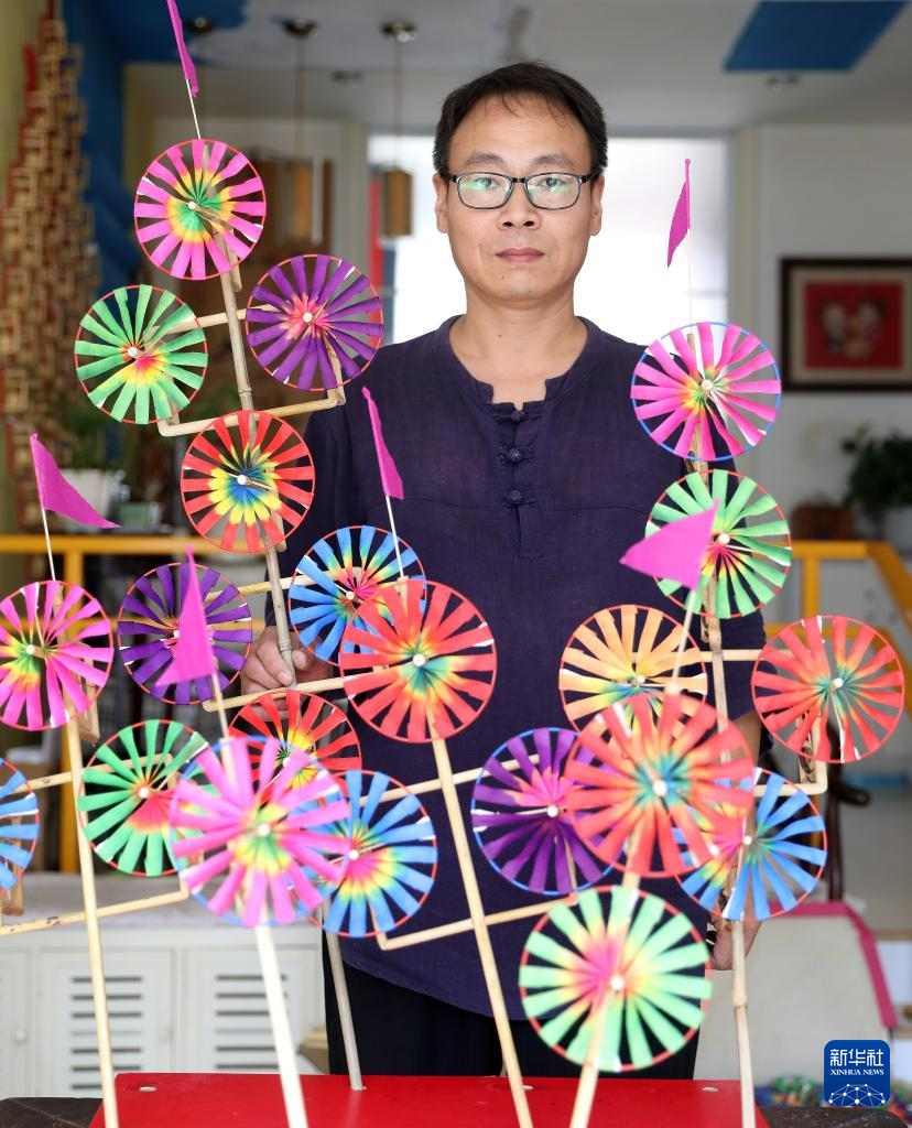传统吉祥轮彩纸风车代表了喜庆和吉祥,作为辽宁营口崔氏传统吉祥轮彩纸风车制作技艺第四代传承人,今年43岁的崔凯将原来传统风车制作流程和制作工艺进行创新和改良。