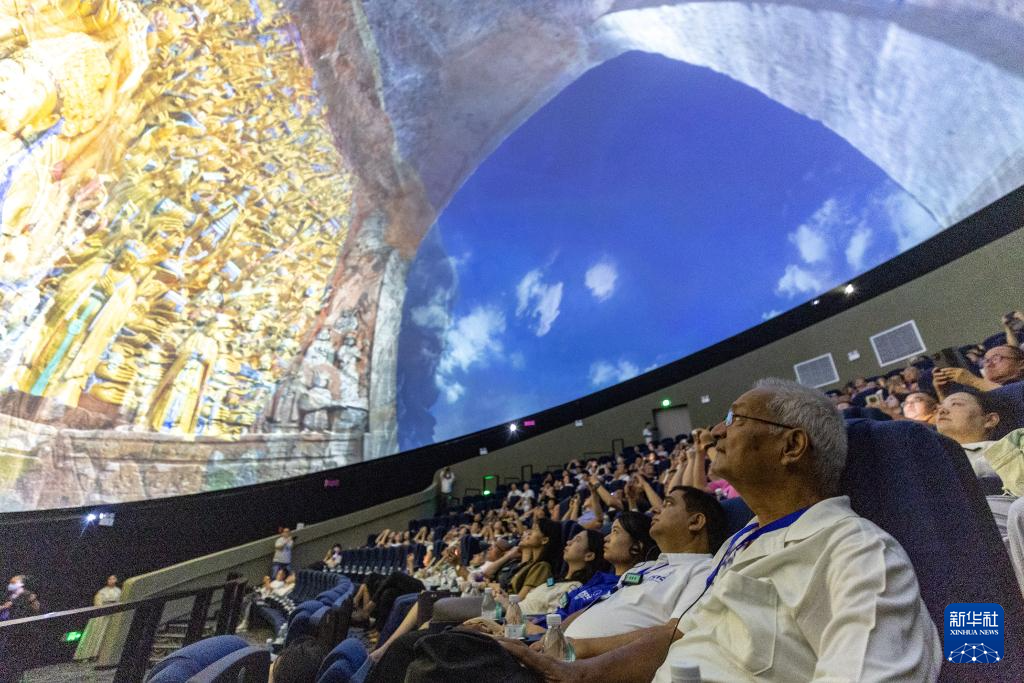 8月19日,嘉宾在重庆市大足区观看8K球幕电影《大足石刻》。