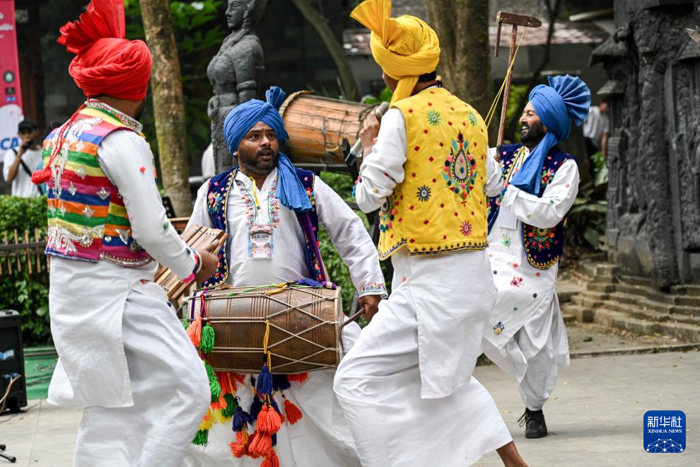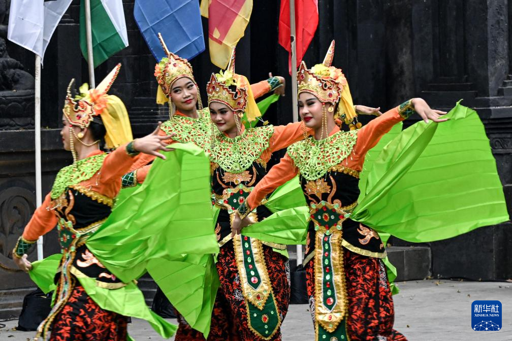 8月23日,在印度尼西亚南唐格朗,来自印度的舞者表演传统舞蹈。