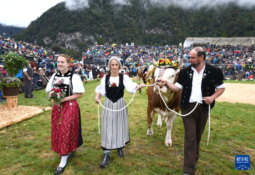 8月27日,在瑞士因特拉肯,身着传统服装的人们参加阿尔卑斯山牧羊人节。