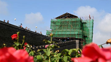 8月27日,游客在伊朗首都德黑兰参观古列斯坦王宫。