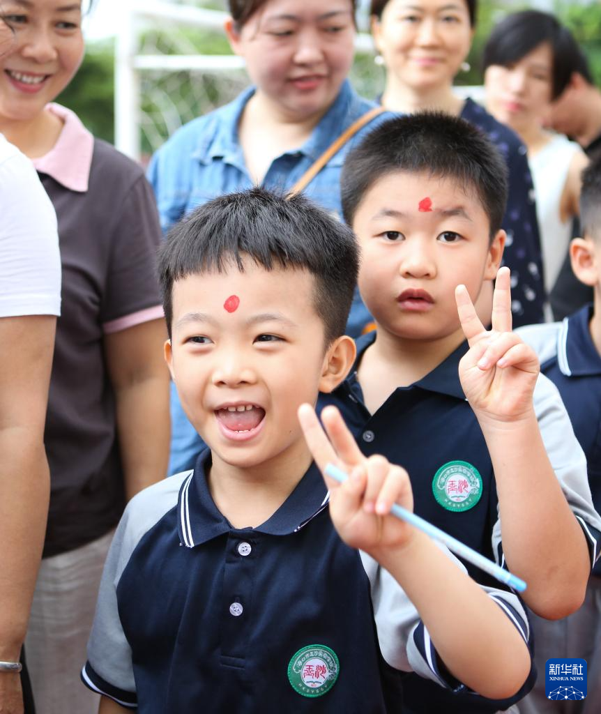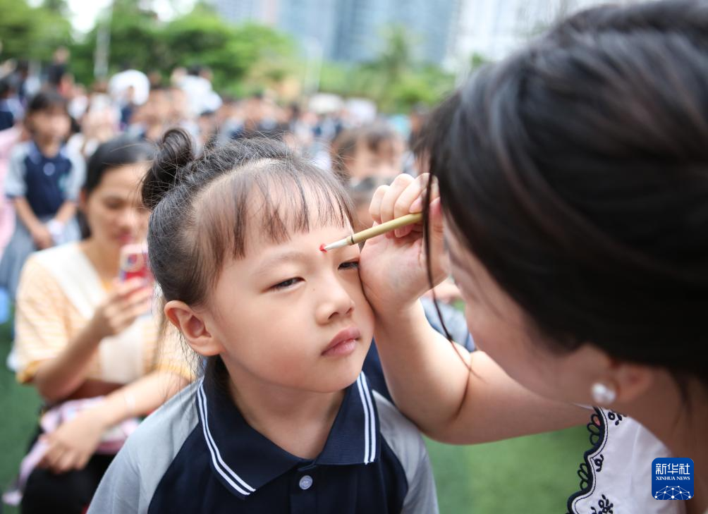 当日,海口市玉沙实验学校举行一年级新生“开笔礼”仪式。小朋友们在活动上感受传统文化,开启新的学习生活。