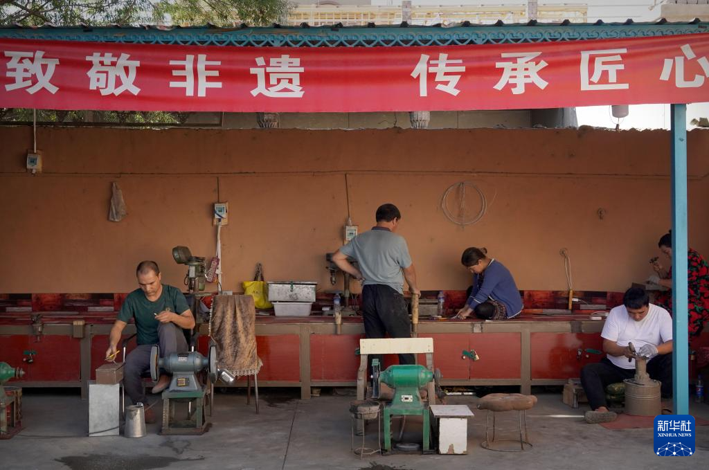 新疆喀什地区英吉沙县拥有众多非物质文化遗产项目,其中维吾尔族传统小刀制作技艺和维吾尔族模制法土陶烧制技艺等为国家级非物质文化遗产。近年来,英吉沙县依托非遗资源,在文化润疆进程中传承发展民族传统特色手工业,打造非遗产业新业态、新动能,助力乡村振兴。