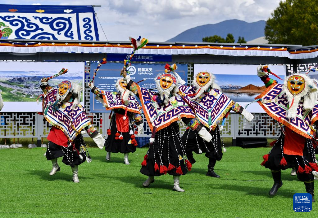 在拉萨市林周县边交林乡当杰村,演员在第十六届西藏珠穆朗玛摄影大展开幕式上表演节目(9月8日摄)。