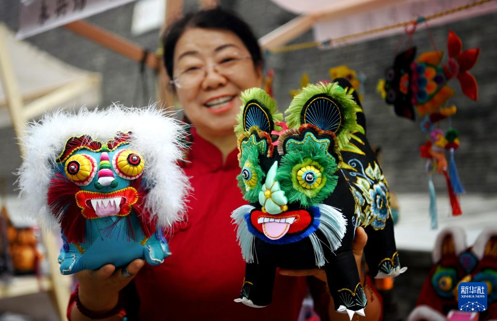 9月12日,西安市新城区“遇见城墙·非遗韵”非遗集市上,王氏布艺传承人王海燕在展示自己的布艺作品。