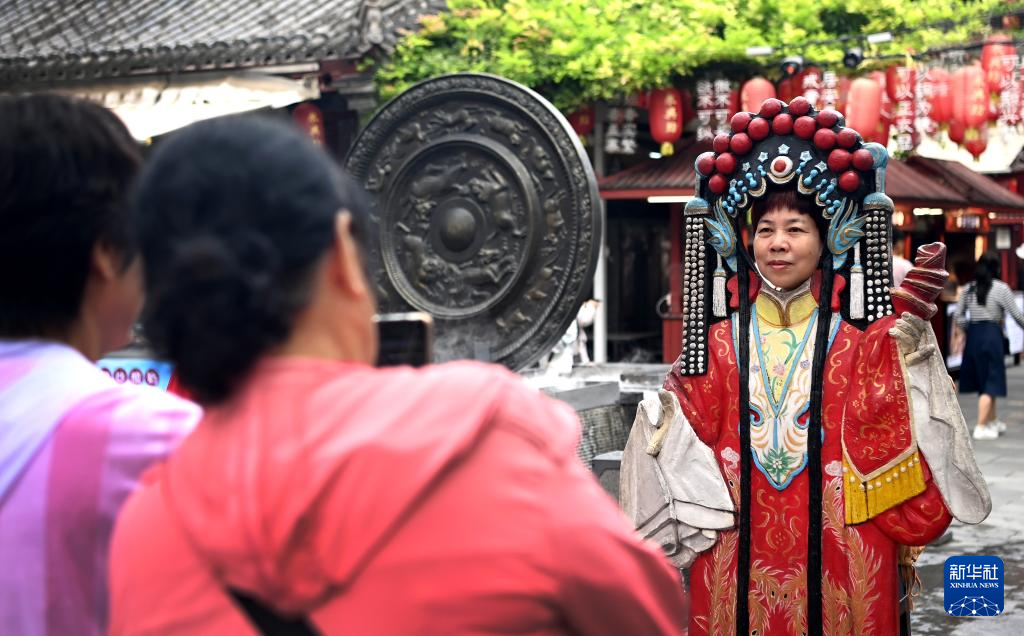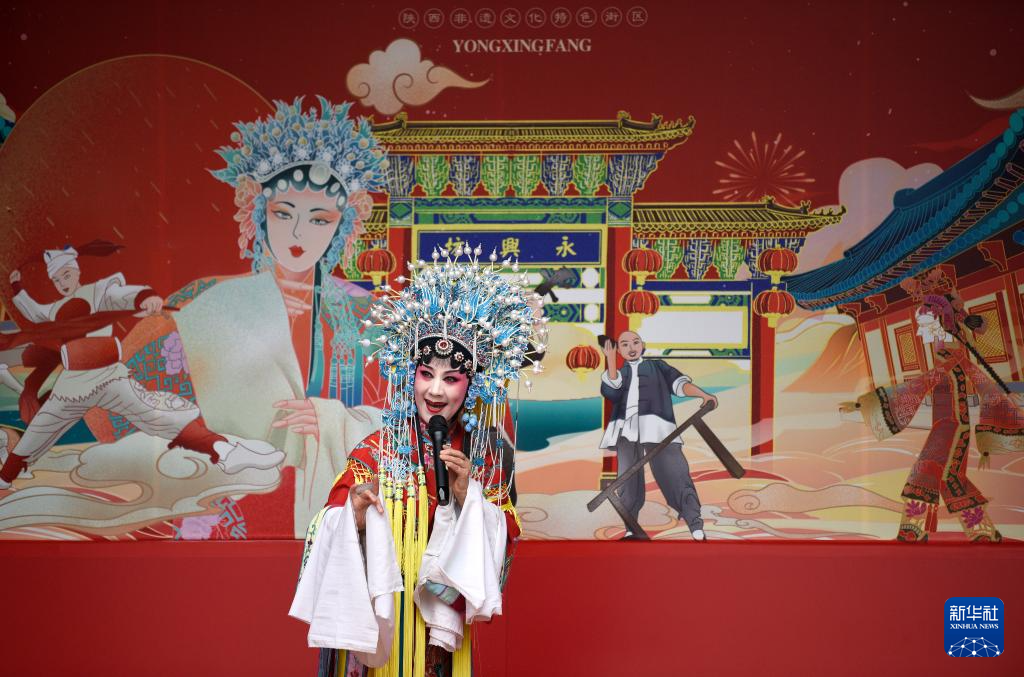 当日,陕西省西安市新城区“遇见城墙·非遗韵”非遗集市主题活动在西安城墙中山门下举办。秦腔、华阴老腔等特色非遗节目在永兴坊戏楼前轮番表演,皮影、布艺、工艺葫芦等二十多种非遗作品在顺城巷内集中亮相,丰富市民文化生活的同时也让游客感受到陕西非遗的独特魅力。