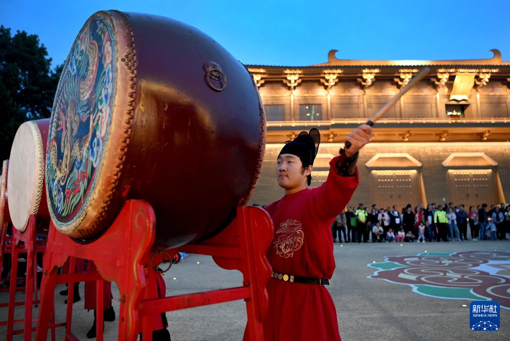 西安大明宫国家遗址公园丹凤门前进行的唐风演出(9月30日摄)。