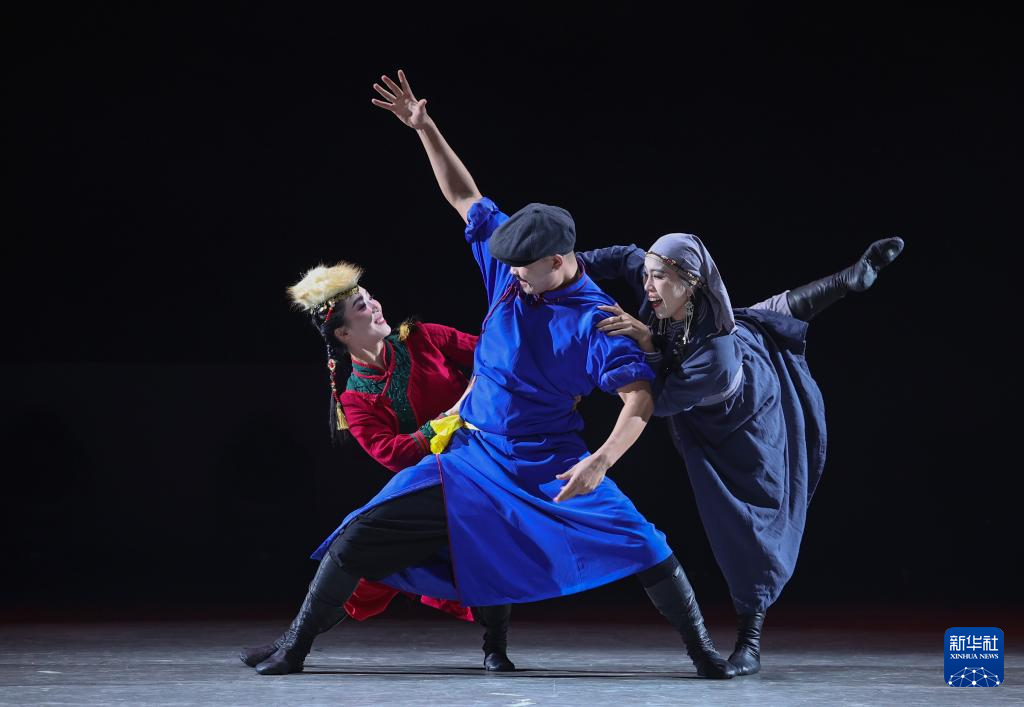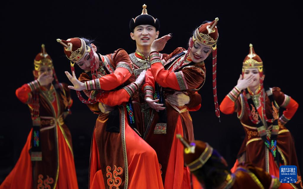 11月19日,新疆博尔塔拉蒙古自治州歌舞团演员表演作品《守·家园》。