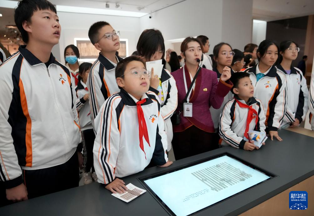 学生在甘肃简牍博物馆参观(10月25日摄)。