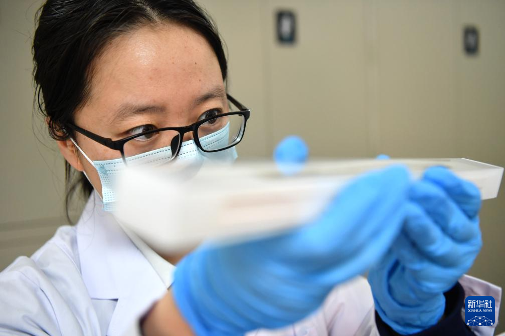 甘肃简牍博物馆科技保护部文物库房管理员杨升查看简牍的封装保护情况(10月26日摄)。