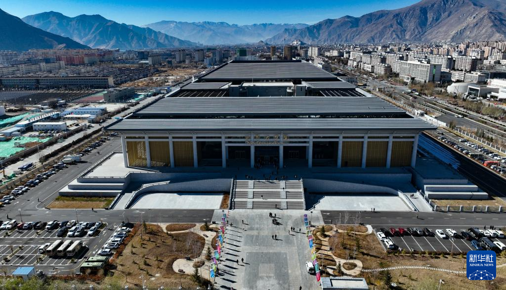 空中俯瞰西藏大剧院(12月15日摄,无人机照片)。