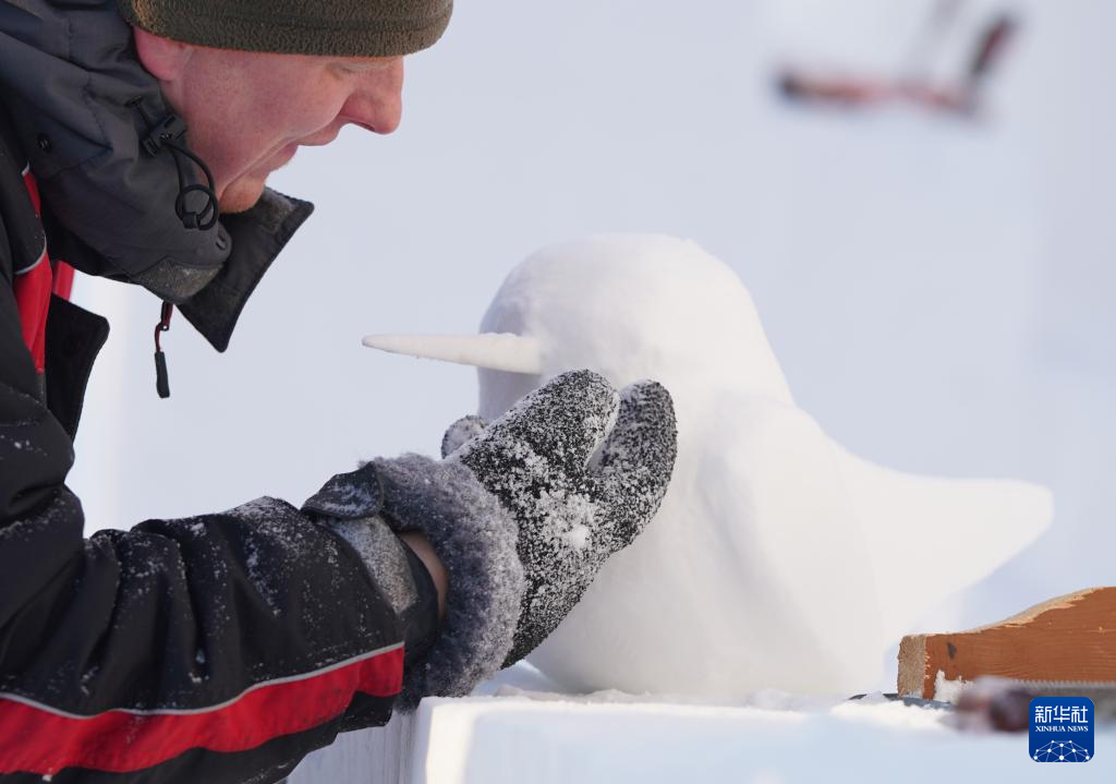 当日,在哈尔滨太阳岛雪博会园区内举行的第26届中国·哈尔滨国际雪雕比赛进入第三天的赛程。