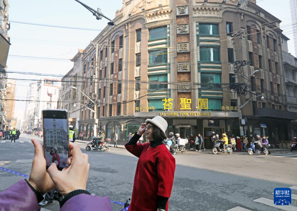 1月9日,市民游客在拍摄黄河路上的苔圣园酒家。据说苔圣园酒家是剧中至真园的原型,是黄河路上标志性的本帮菜馆之一。