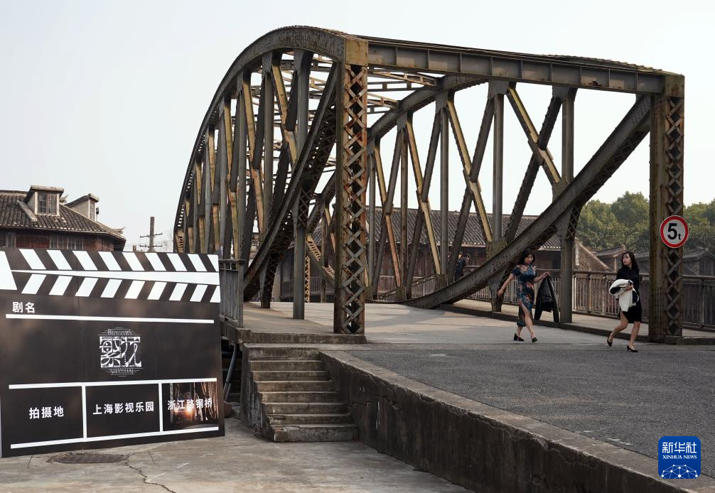 1月6日,在上海影视乐园(车墩影视基地)的浙江路钢桥实景旁,放置着电视剧《繁花》在此拍摄的标志牌。